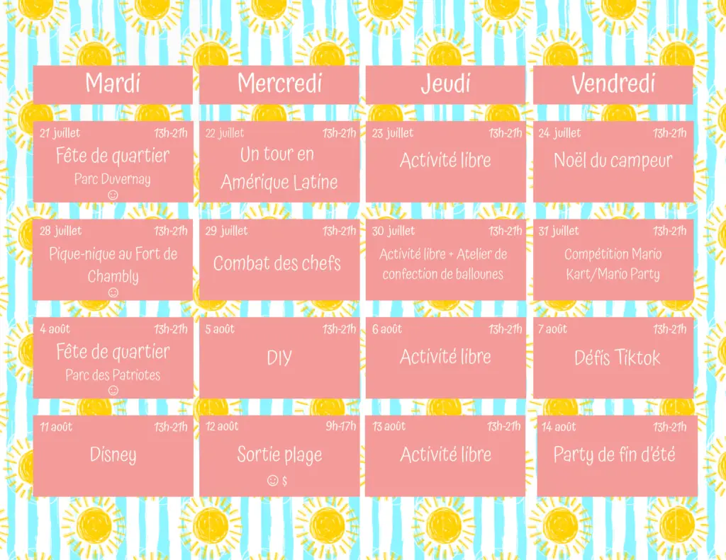 Voici des exemples d’activités proposées aux jeunes pour la période estivale :
